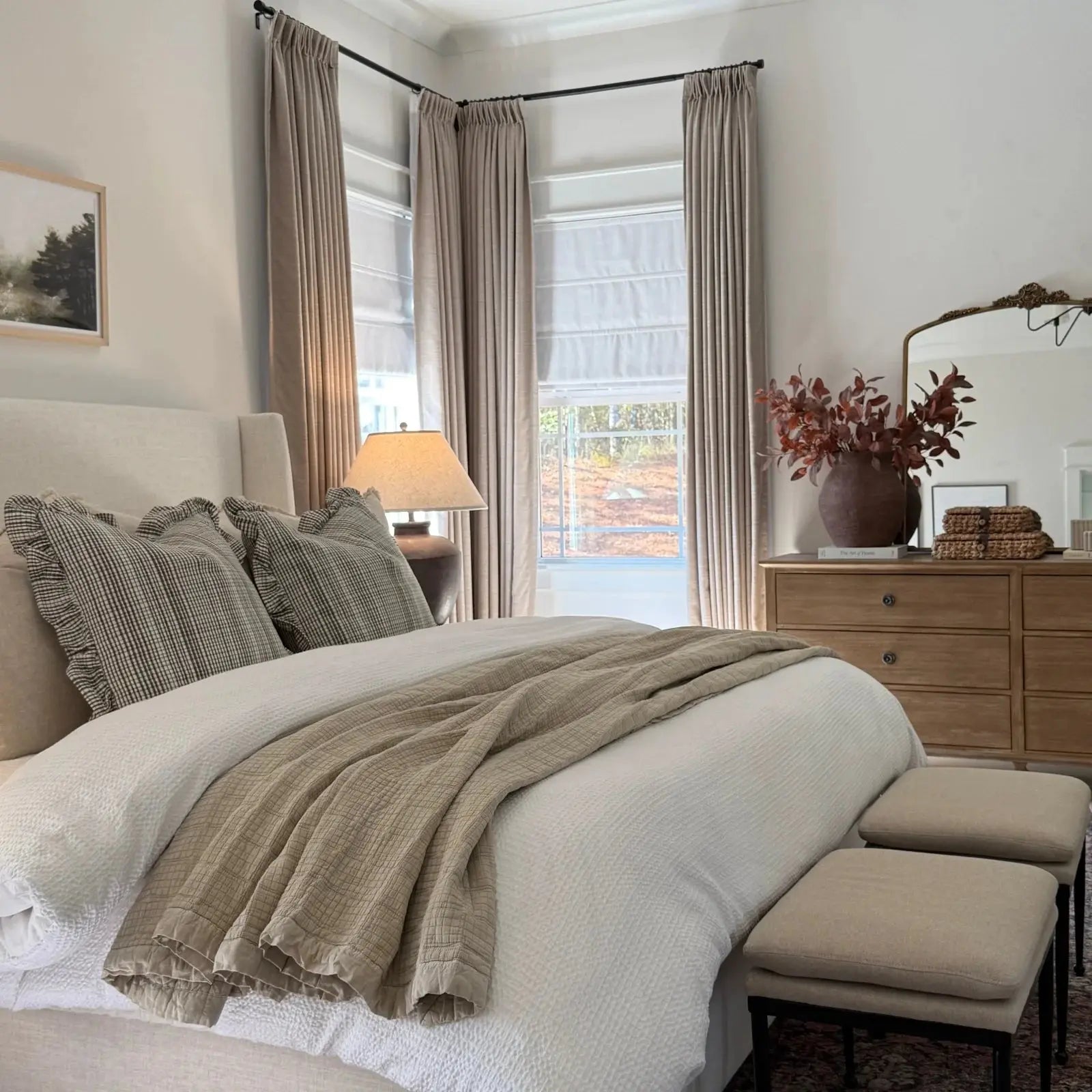 Aesthetics and Functionality: Blending aesthetics and functionality, the neutral tone and soft pleats add a touch of sophistication to the room.