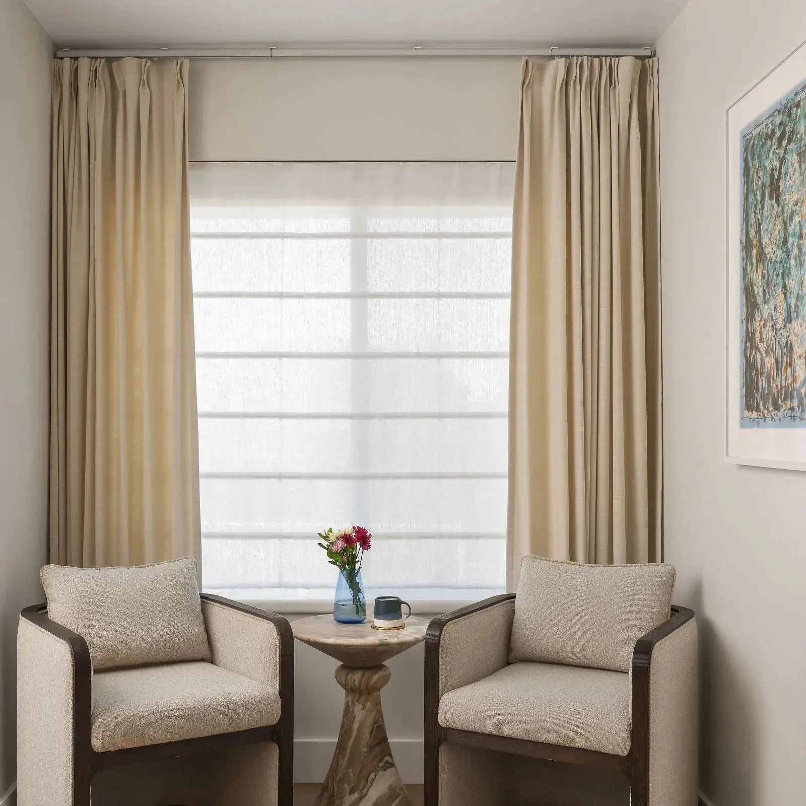 I don’t love that the edges of the Roman shades look creased.