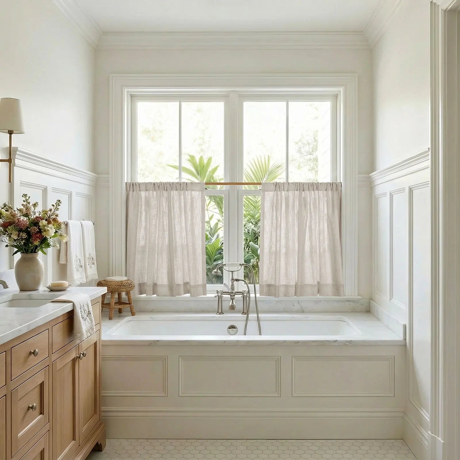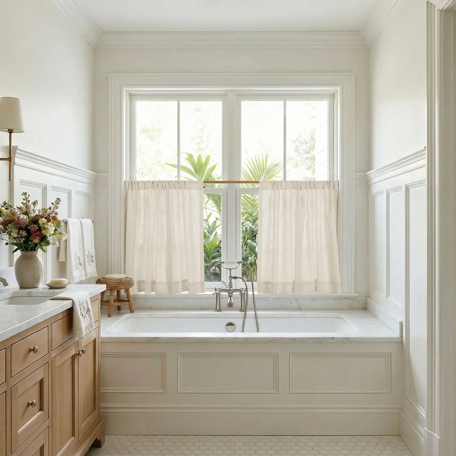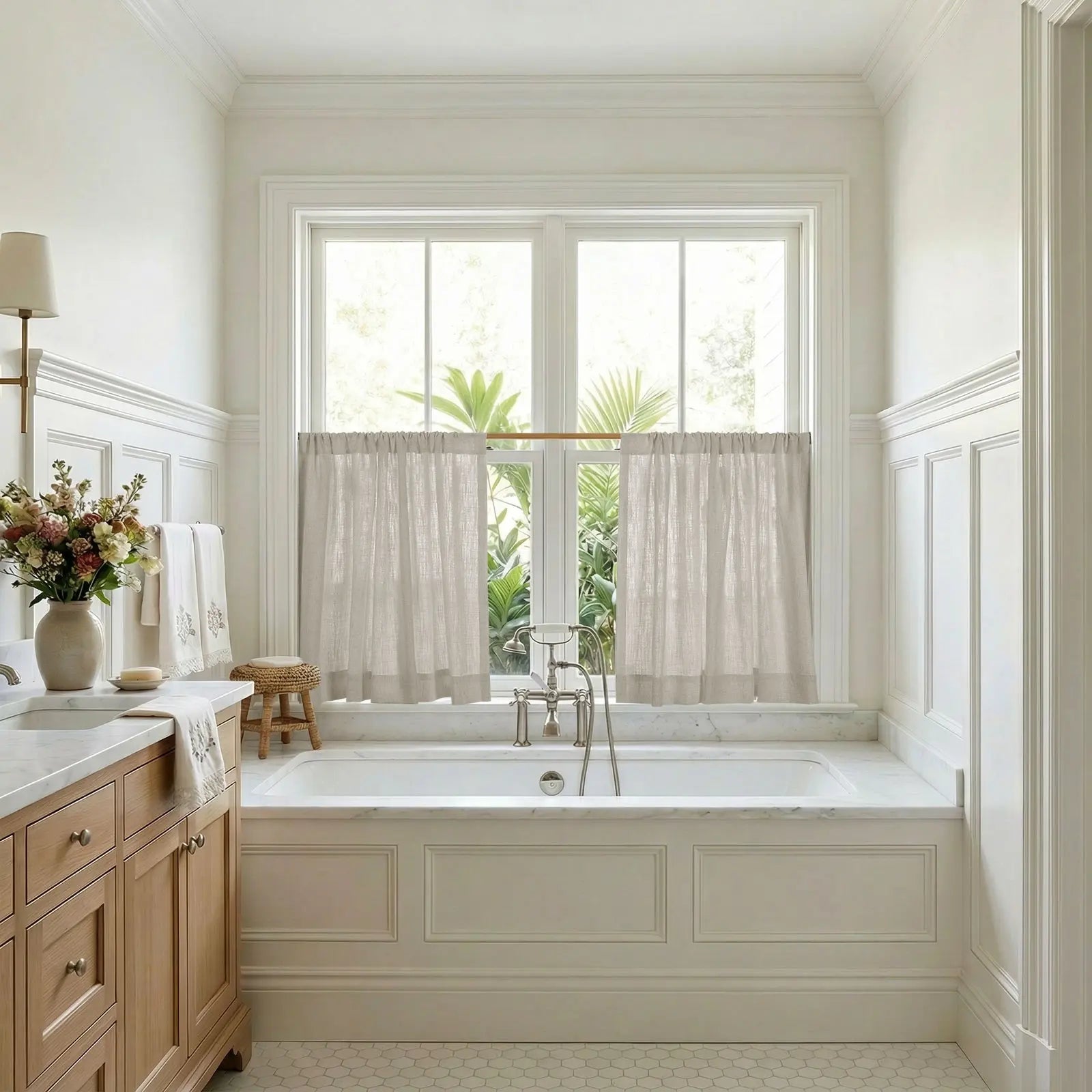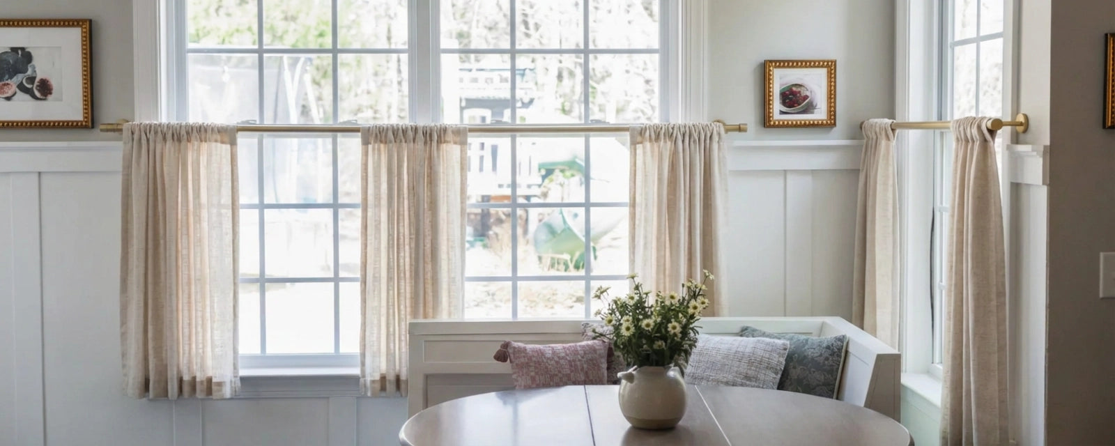 Featuring a rod pocket header for an easy, gathered look—adds relaxed charm and effortless style to small windows.