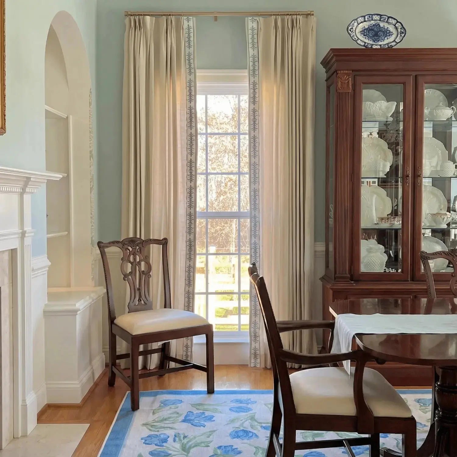 Two Pages has upped their game. My drapes came in a lovely branded zipper bags with a lovely message inside. Delivery was so quick! I have over a dozen curtains in my home from Two Pages. I recently upgraded my Isabella Paper White curtains in my living room to Isabella Paper White with R31 Trim. Oh my goodness- GORGEOUS!!! Firstly, my original Paper White drapes had a blue tinge to them, a very stark white. Which was fine, but I don’t know if they changed the sourcing, but the Paper White colour is now a lovely True clean white that is more soft, I LOVE the white. The R31 trim sample that I ordered in advance, also matched the trim tape on the curtains. Customer service was good to confirm with my enquiry that the sample did indeed match, as the website colour depicted was a bit different. It is a stunning sky blue (not aqua like the website picture). Moreover the workmanship and specifically how the tape was sewn onto the drape, was straight and aligned nicely with the thread. I was nervous when I ordered, because I saw a review where you could see that the sewing had gone outside of the lines and looked sub par; but I can assure you, the trim tape is sewn on beautifully. I plan to order Jawara Pink with Q21 or K61 next; which will make it 20 pairs of drapes from Two Pages that I own, LOL. The trim tape itself is such good quality, wide and stunningly embroidered. They rival designer named ones. I WISH I could order the trim tape itself so that I can add it to a throw pillow and at the bottom of my slip covered dining chairs, to coordinate the rooms. My style is Modern French Country I would say. Thank you Two Pages for my exquisite drapes!