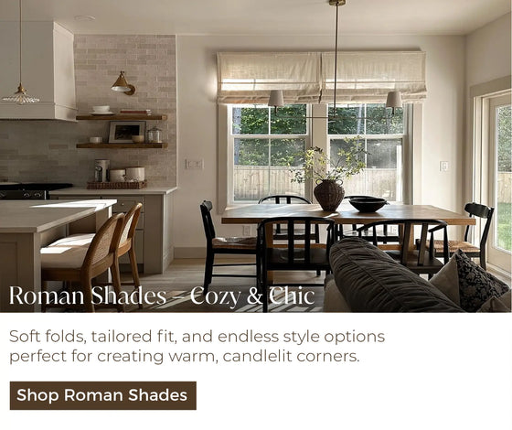 Our Roman shades and linen curtains offer a perfect blend of style and functionality, making them ideal for any room. Thermal and blackout fabrics also help maintain warmth and privacy during chilly October nights.