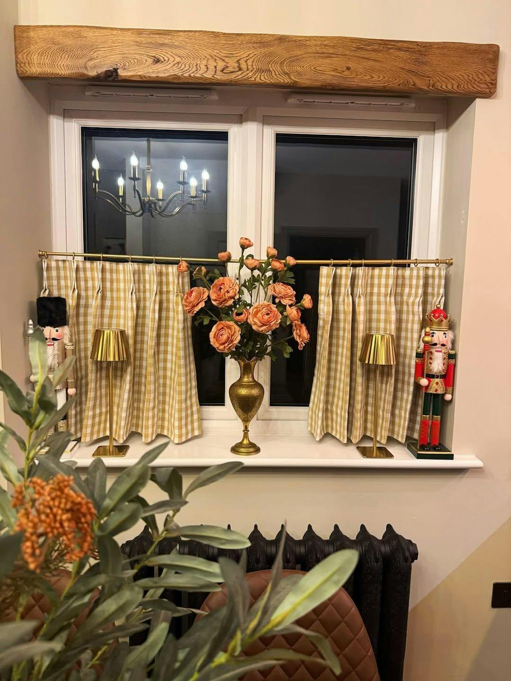 I hung these Celia yellow and white plaid café curtains in my kitchen for the holidays, and they instantly brought a cheerful, festive touch! The soft yellow stripes paired with crisp white brighten up the room, making it feel warm and inviting. They perfectly complement my Christmas décor. Such a simple change that makes my home feel merry and cozy this season!