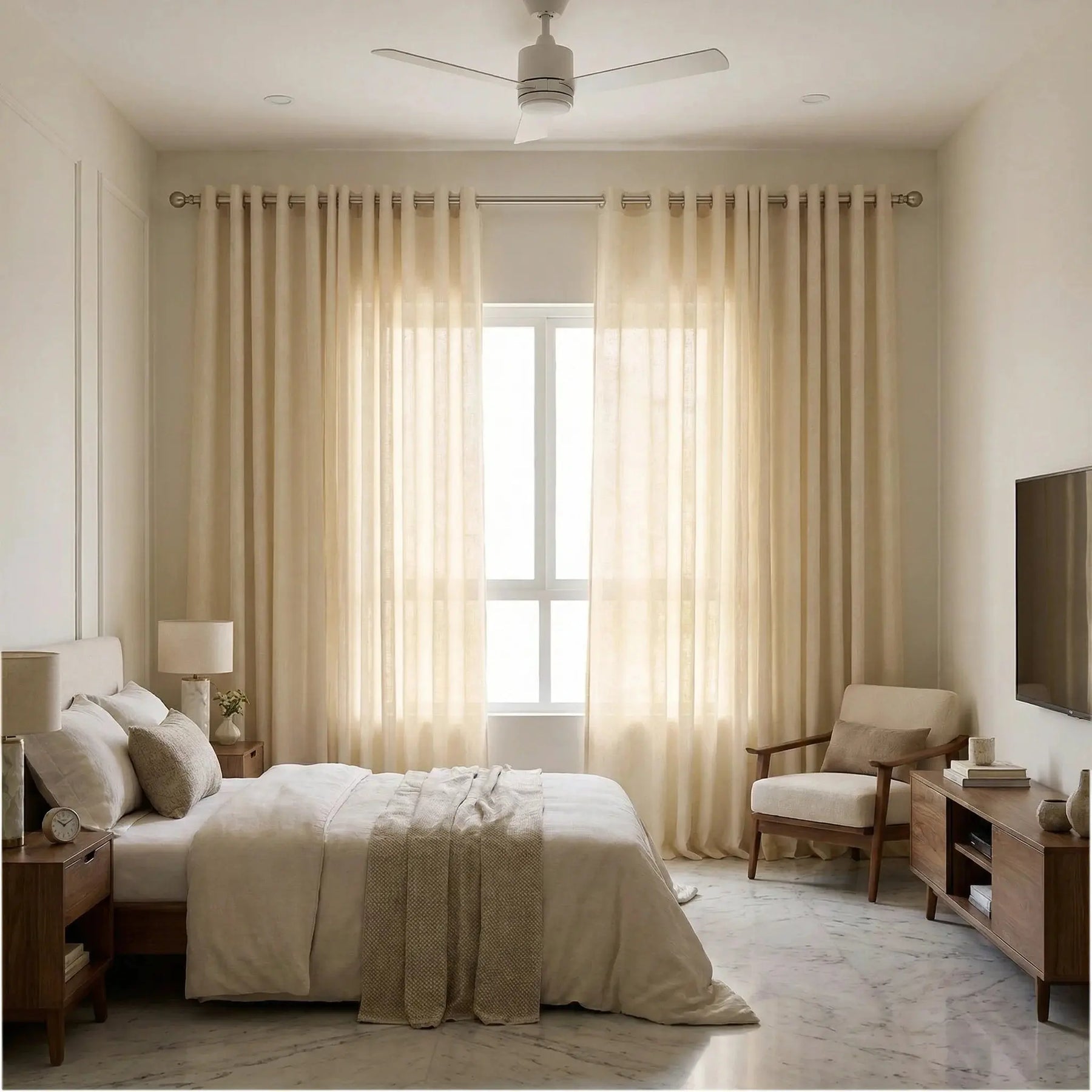 • Airy Aesthetic: Custom Belgian flax linen curtains allows natural light to softly filter through, adding warmth and charm to any setting.