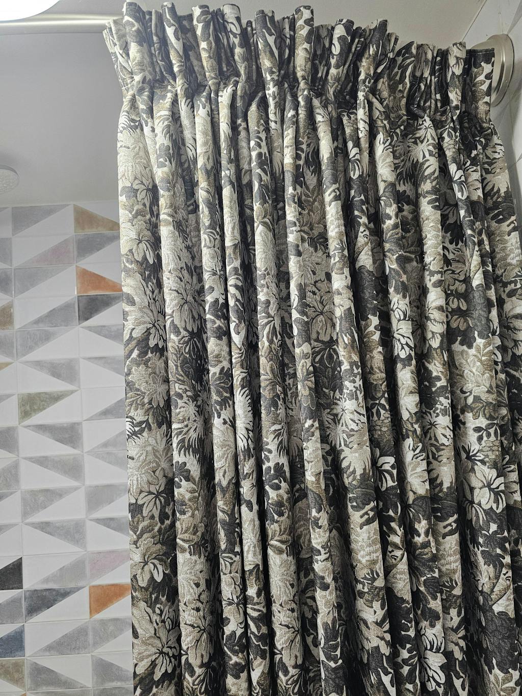 For pleated curtains, we will suggest the curtain width is 1x of the curtain rod/track, measuring the length from the eyelet ring where the curtain hooks are attached.