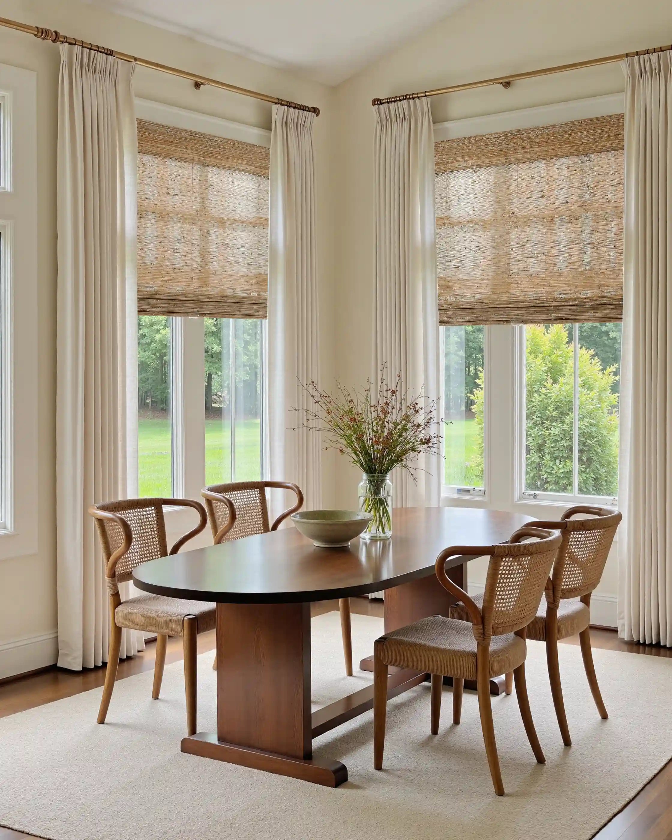 Complete your home with these natural-looking custom shades on your windows. With a built-in 4-6” valance, they transition seamlessly between traditional and modern settings, coastal and French country aesthetics, and more. Whether paired with elegant drapery panels or sheer curtains, they exude sophisticated or casual charm.
