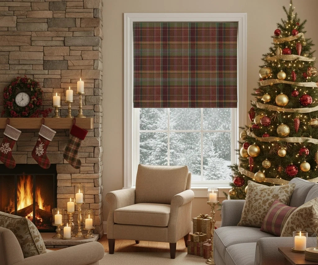 The traditional plaid design blends earthy hues with rich undertones, evoking a cozy, festive charm that transitions beautifully through the seasons. Perfect for creating a welcoming atmosphere with a hint of holiday spirit.