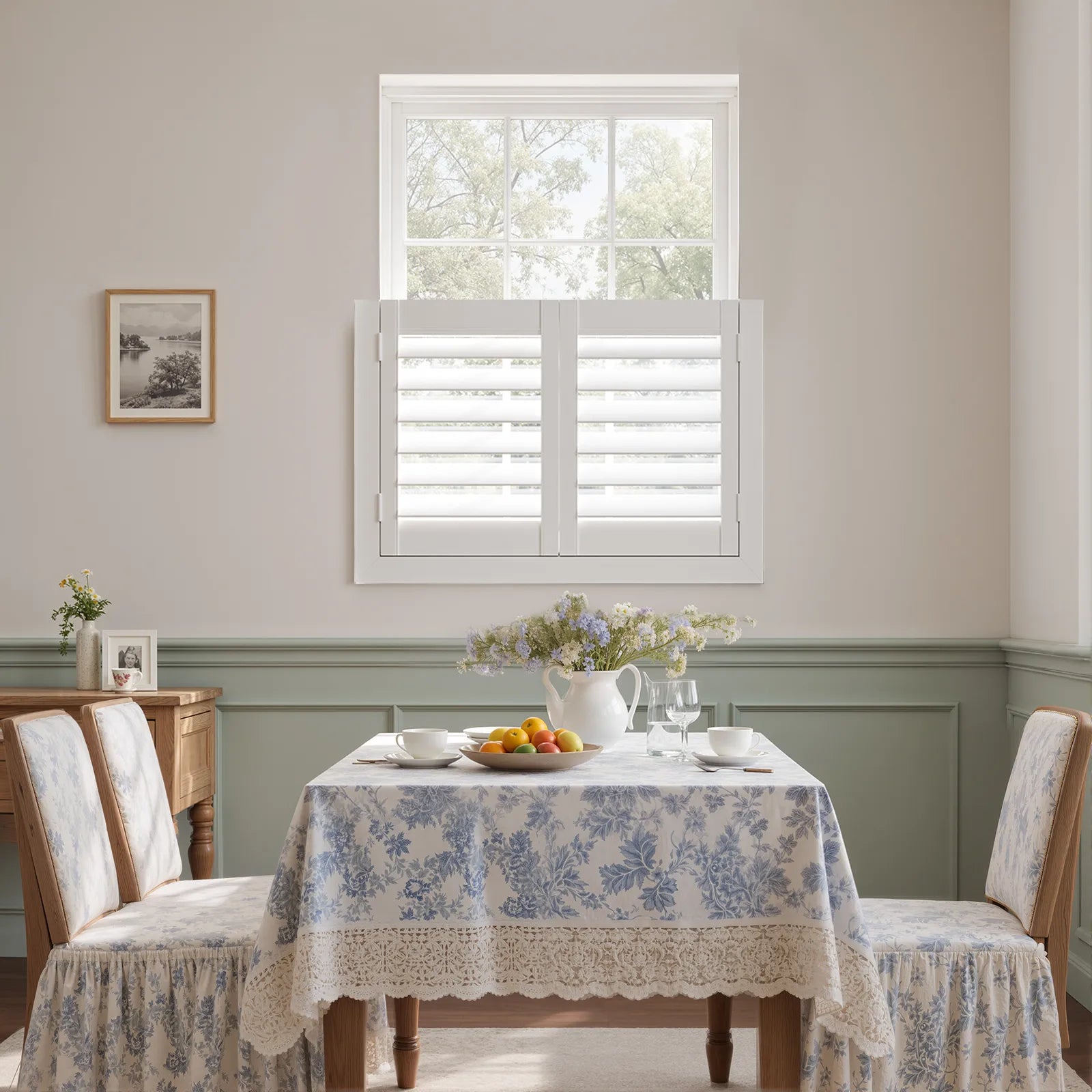 Adjustable louvers let you easily control light and privacy, from soft daylight to full evening privacy.