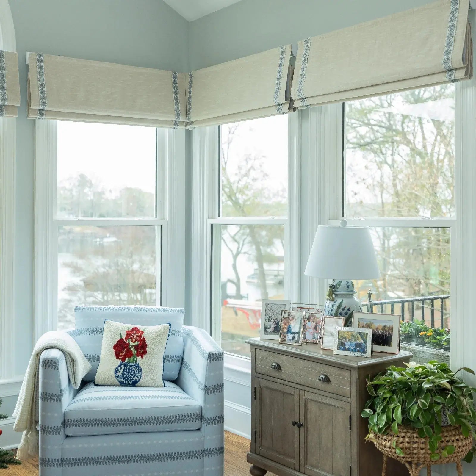 Custom Roman Shade with Trim Border Cordless- -TWOPAGES