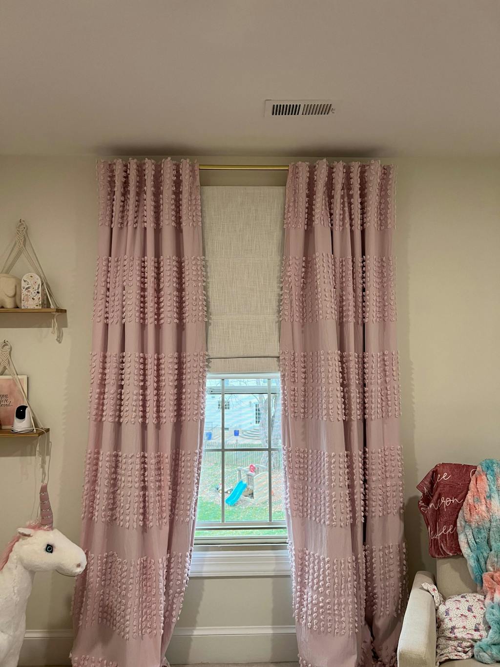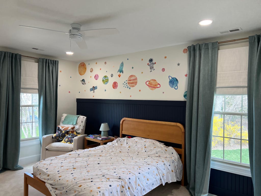 I was very excited to get these and love how they look with my kids rooms. Unfortunately, the way they are sewn together allows for a lot of light to get through. I ordered the blackout lining hoping I wouldn’t need to close the curtains but as you can see, the seams are super bright.