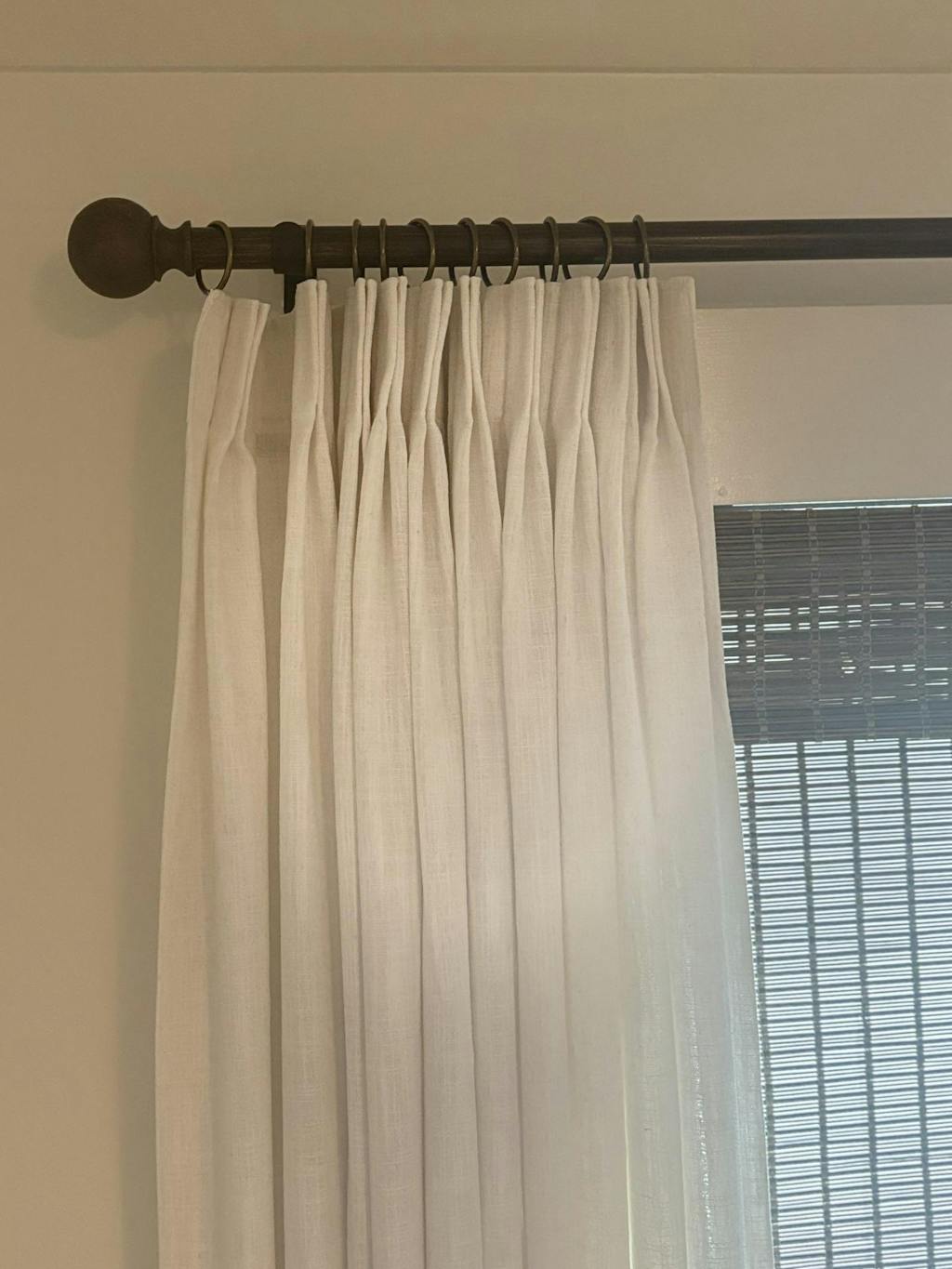I was disappointed with the fabric thickness. The snow white linen is very thin, and you can see through it a bit. The pinch pleats are nice, and they look great, but the lack of opacity is a problem for my living room. They’re okay for a guest room, but not for main living spaces.
