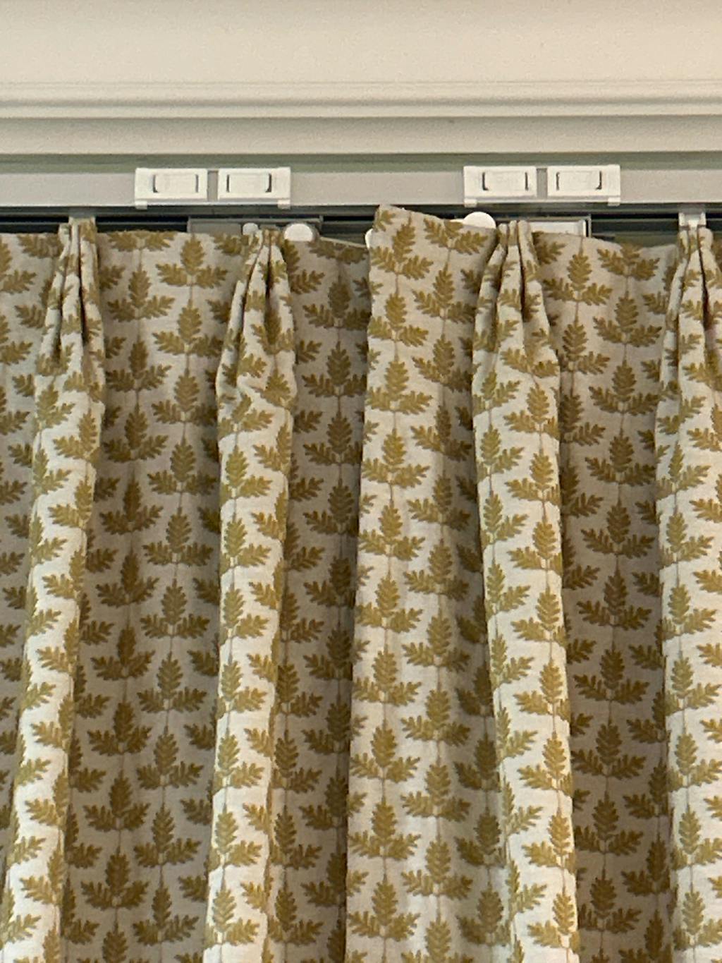 My client needed panels to help elevate,expand and frame extremely low window as a design correction. Motorized lined shades with Liz linen lined drapery and oil rubbed bronze french returns outside mount 20" high above windows. Long panels to elevate the space and connect it to the ceiling in this massive room. The panels came folded and perfectly made. I couldn't be happier that they also included the adjustable pins.No pricking my hands or fingers with traditional drapery pins. Interior design is all about correcting mistakes. I think this really worked here. Thank you for such a beautiful, quality made and affordable semi custom product that really elevates.