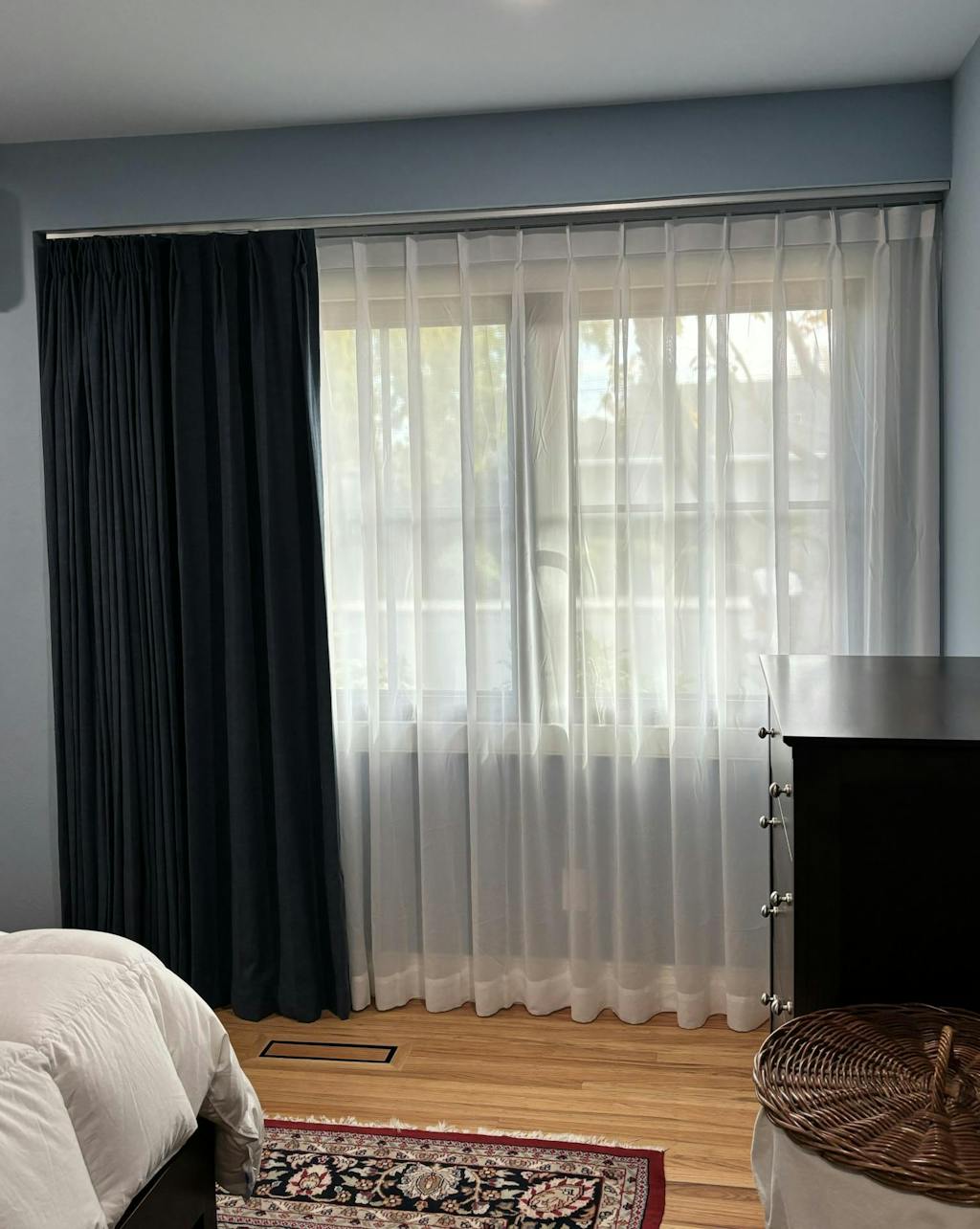 Add texture, softness, and movement to your room by letting the sheer curtains hang freely, while the heavier drapes can be tied back or left to drape naturally. You can hang a second layer of curtains, such as blackout curtains, behind the sheer curtains to provide privacy.