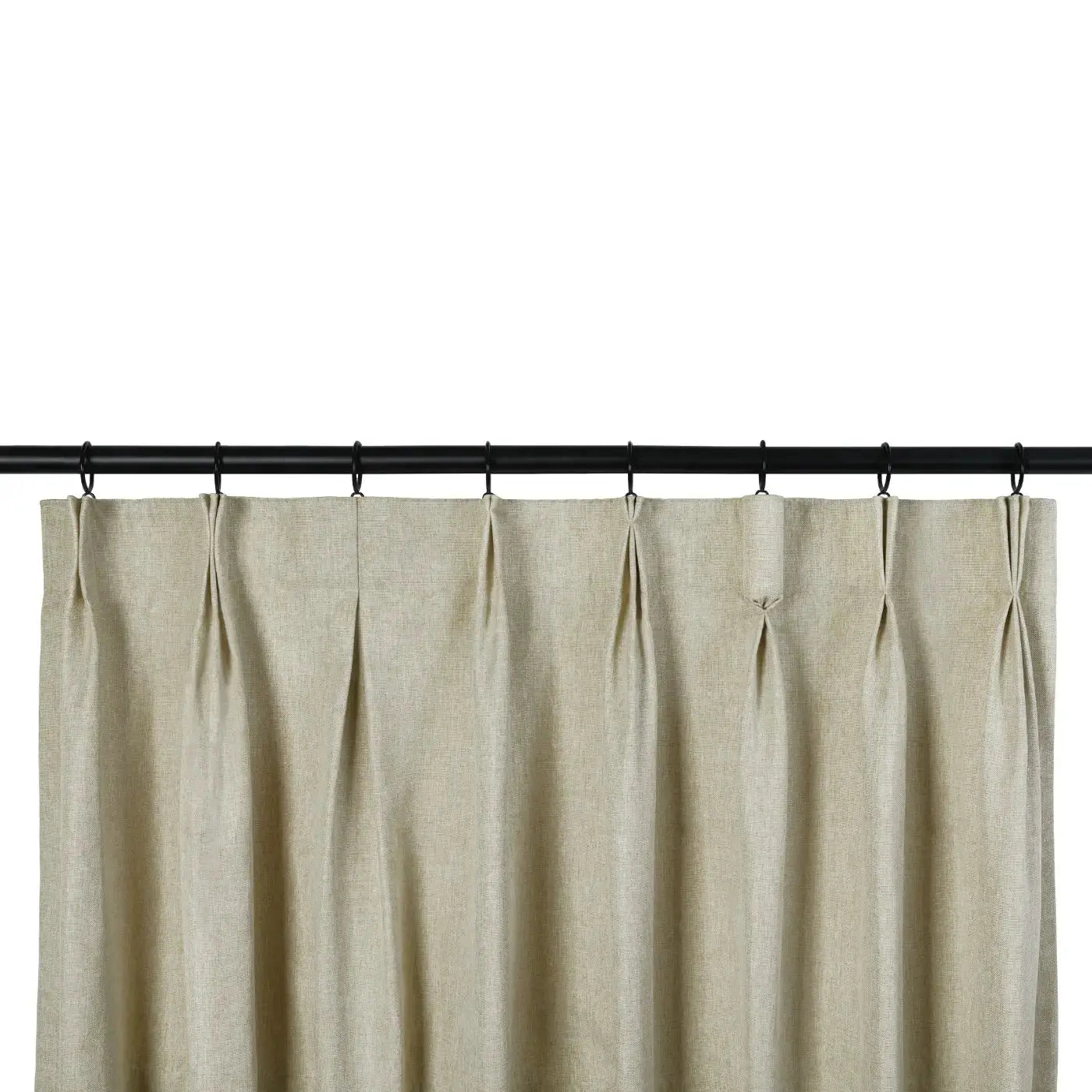For pleated curtains, we will suggest the curtain width is 1x of the curtain rod/track, measuring the length from the eyelet ring where the curtain hooks are attached.