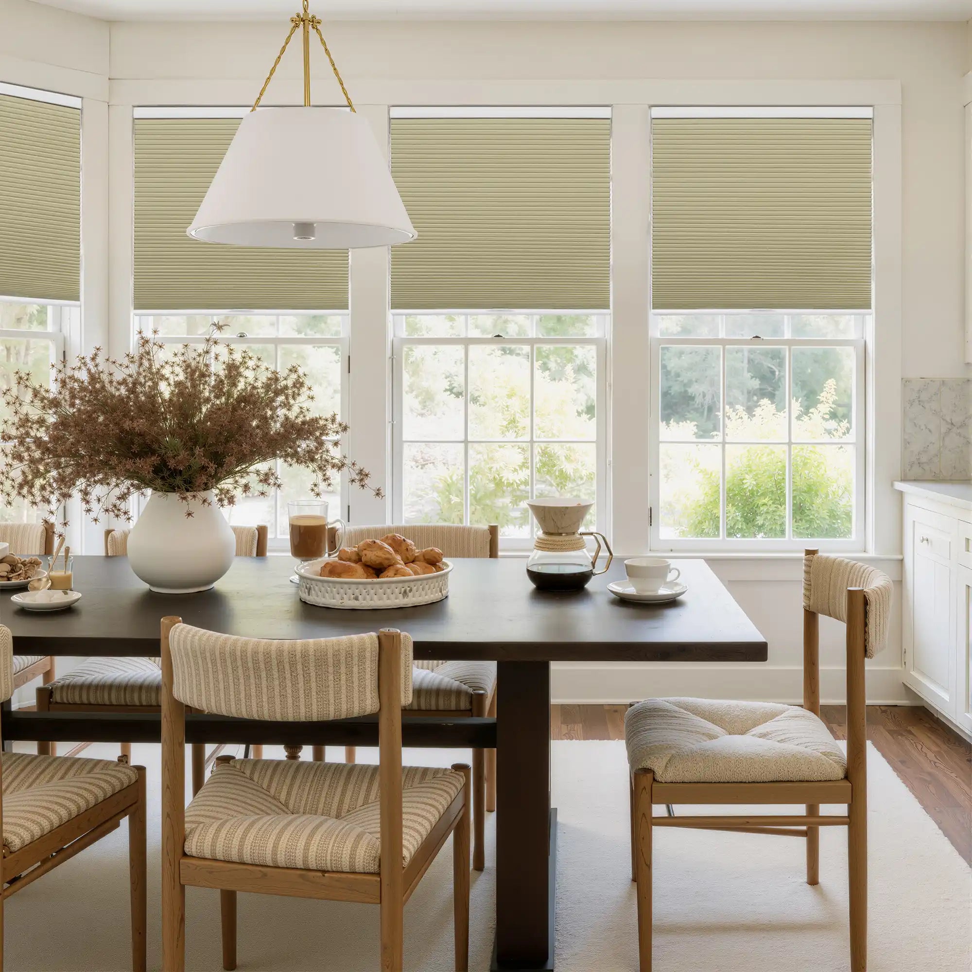 Cordless cellular shades are safer than traditional ones, with no hanging cords to avoid potential entanglement risks while eliminating the visual distraction of cords.