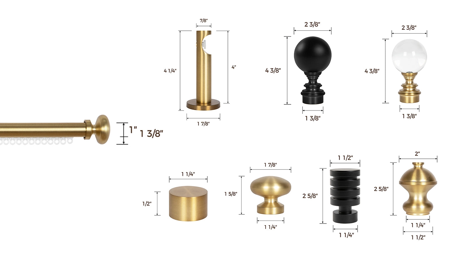 Designer Finials: Available in stylish, elegant finial styles to match your mood.