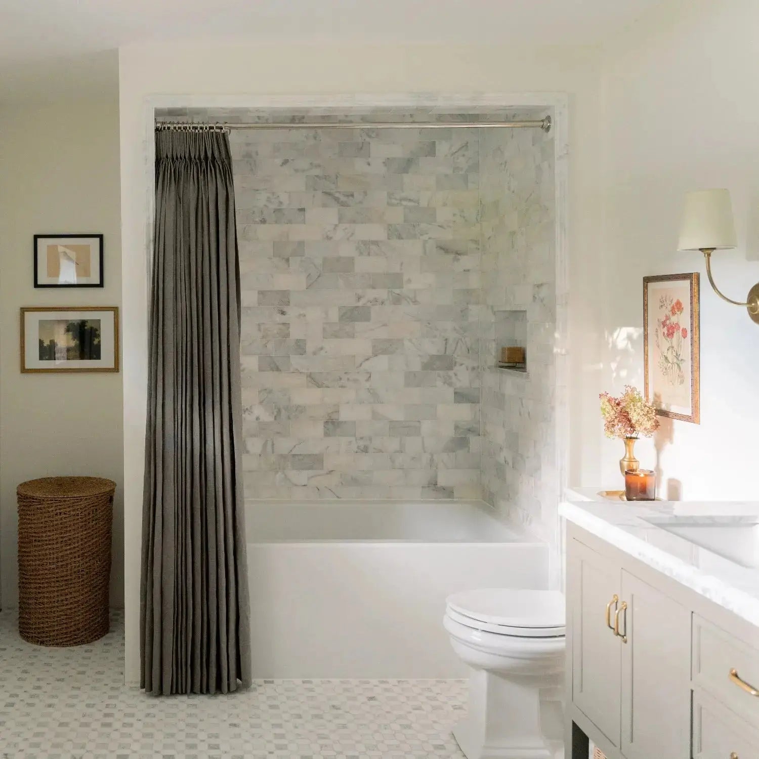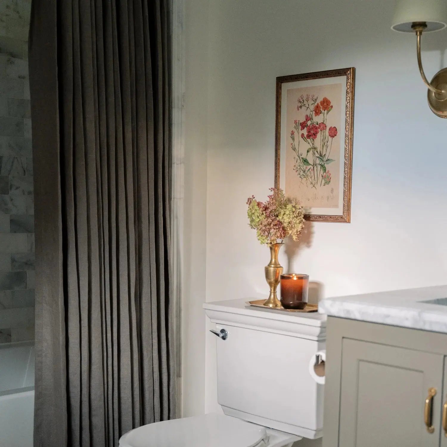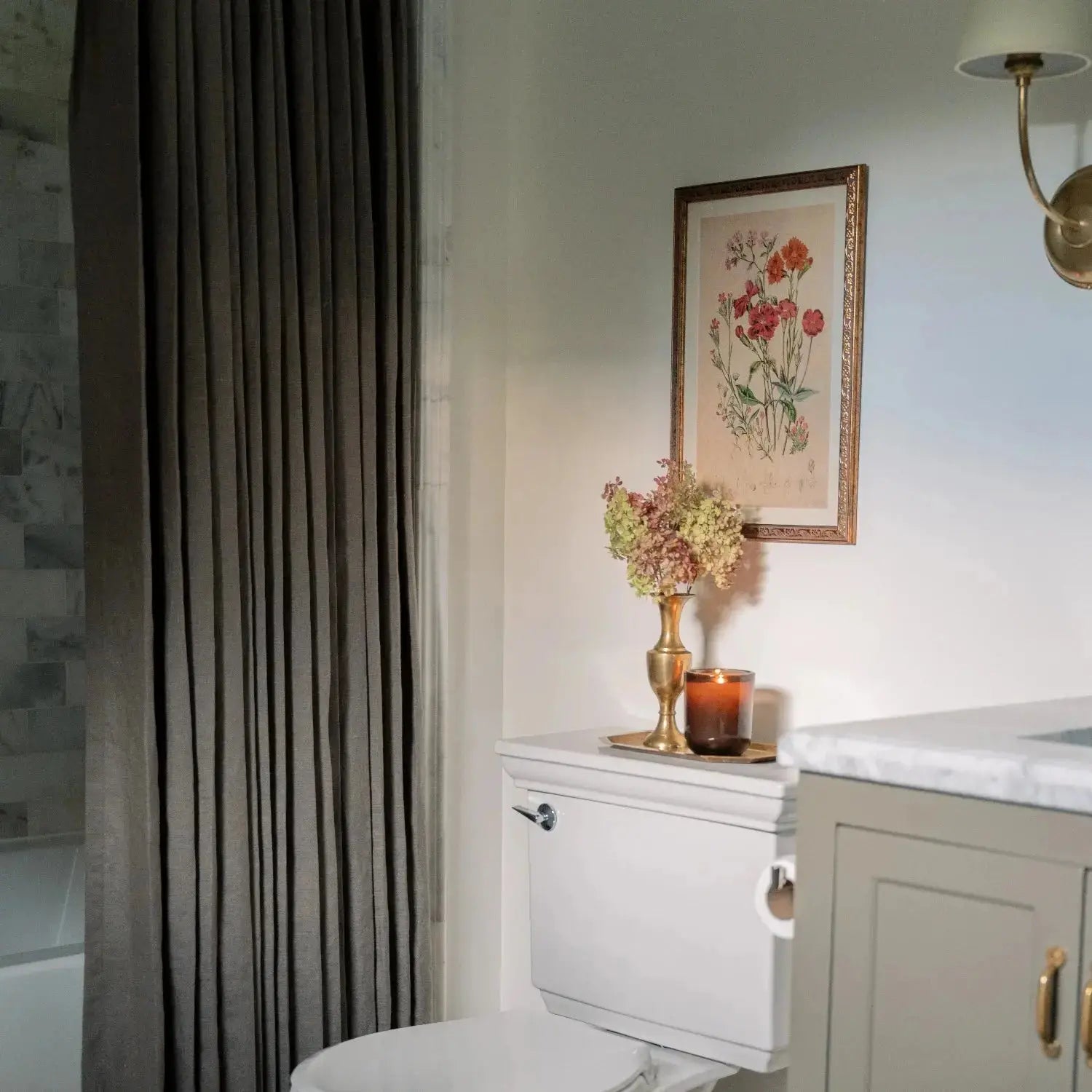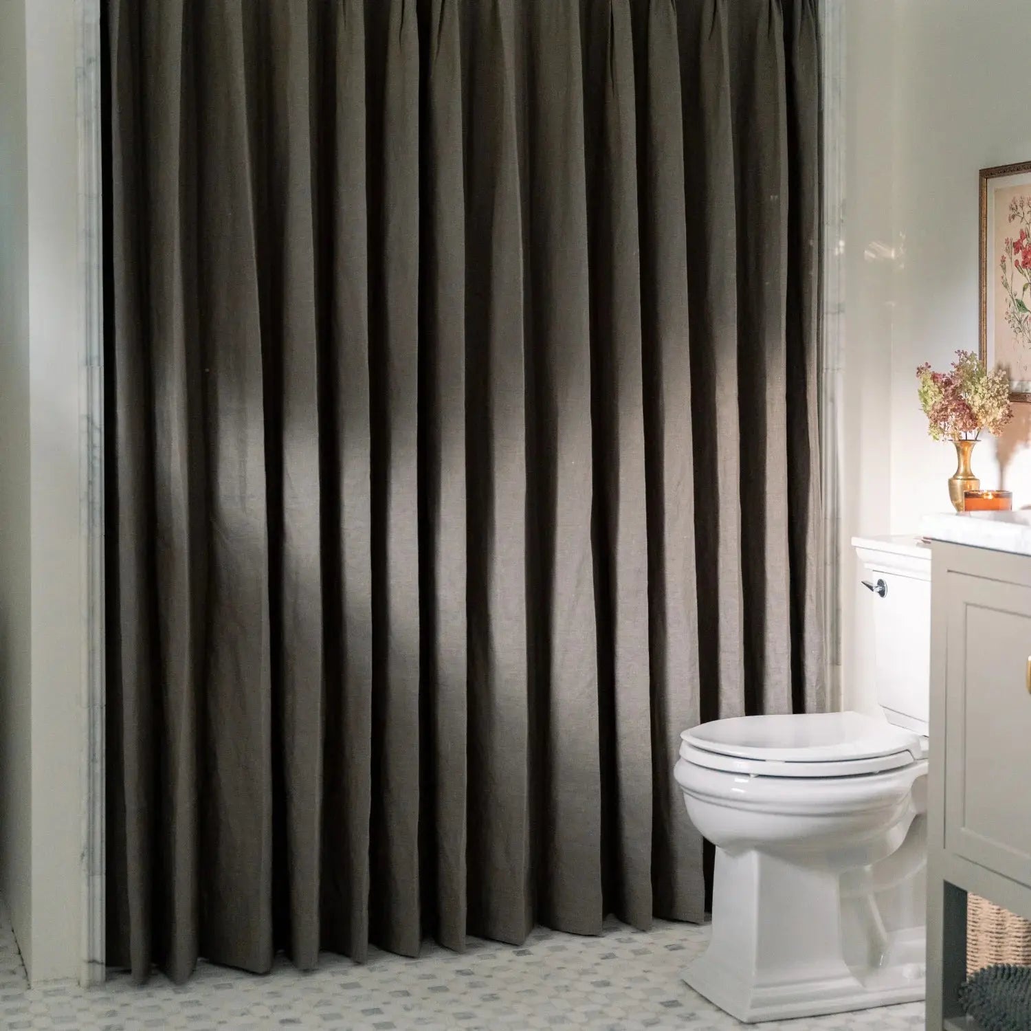 Linen-blend bathroom curtains offer excellent airflow and moisture-wicking. These custom shower curtains keep your space cool and dry while adding a soft, natural touch.
