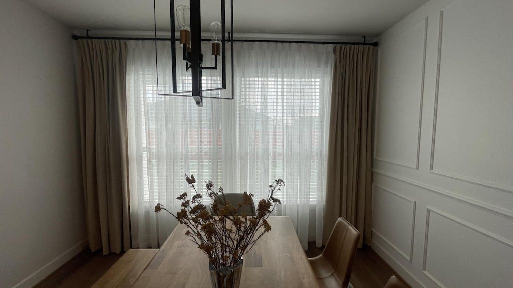 Add texture, softness, and movement to your room by letting the sheer curtains hang freely, while the heavier drapes can be tied back or left to drape naturally. You can hang a second layer of curtains, such as blackout curtains, behind the sheer curtains to provide privacy.