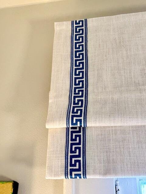 Viscose’s flowy nature creates fluid lines and the linen component adds structure. The balance between fluidity and structure makes this fabric blend versatile for a variety of window styles.
